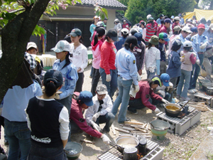 @砦JLの育成のためのトレーニングキャンプ(毎年4月開催) A区内の子ども会の高学年対象に行われるトレーニングキャンプ。 (毎年開催。ゴールデンウィーク前後) デイキャンプに欠かせない、 ・テントの張り方 ・飯ごう炊飯 ・カレーの作り方 ・キャンプソング ・キャンプファイヤー などを指導します。 |